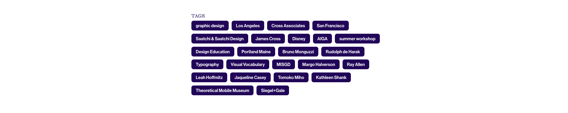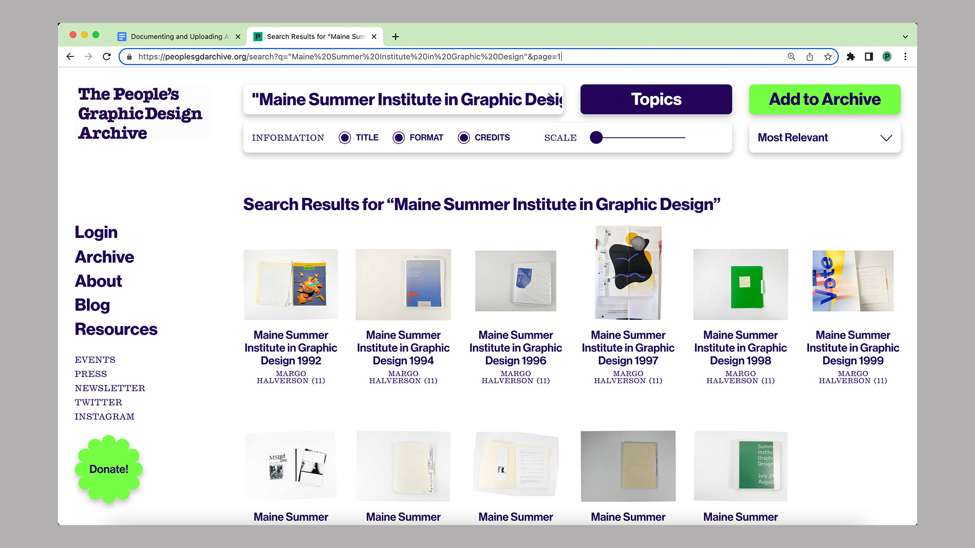As each binder PDF was uploaded, adding tags was vital. Tags make the material relevant for many different interests—meaning that depending on a search, the Maine Summer Institute of Graphic Design binders would show up.
