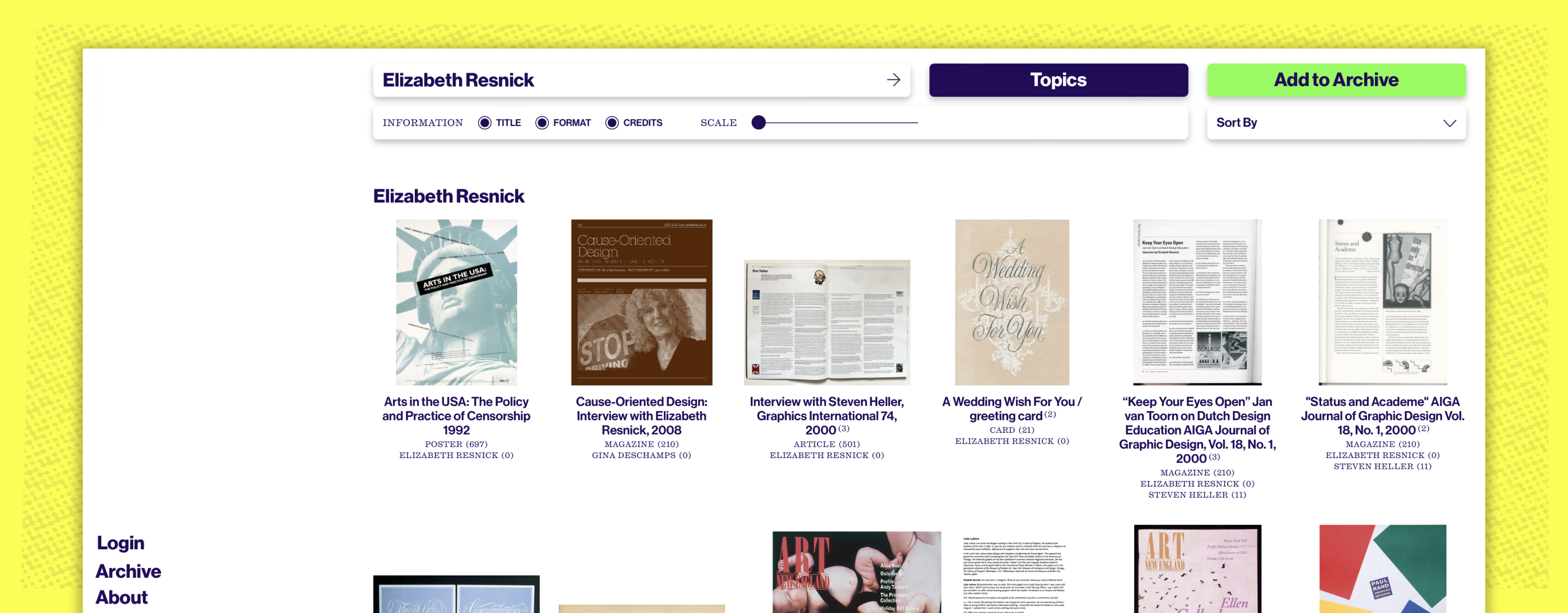 Resnick: I am delighted to support this fantastic project by uploading material for the benefit of new audiences. There is so much design and illustration work that was produced before the advent of the internet and digital reproduction. The website enables everyone to choose what they like to share, bringing new life into work initially marginalized and considered not worth examination.