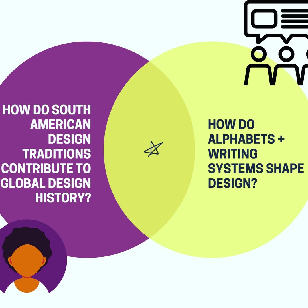 Griffin asks students to identify a research focus—like South American Design traditions, Black Futures, or Persian Design—and find its intersection with the topics in the Design History syllabus. The resulting venn diagram becomes a vital research tool that leads to recuperative narratives that shift from Eurocentrism toward more inclusive, global perspectives in design history—where everyone contributes and learns together.