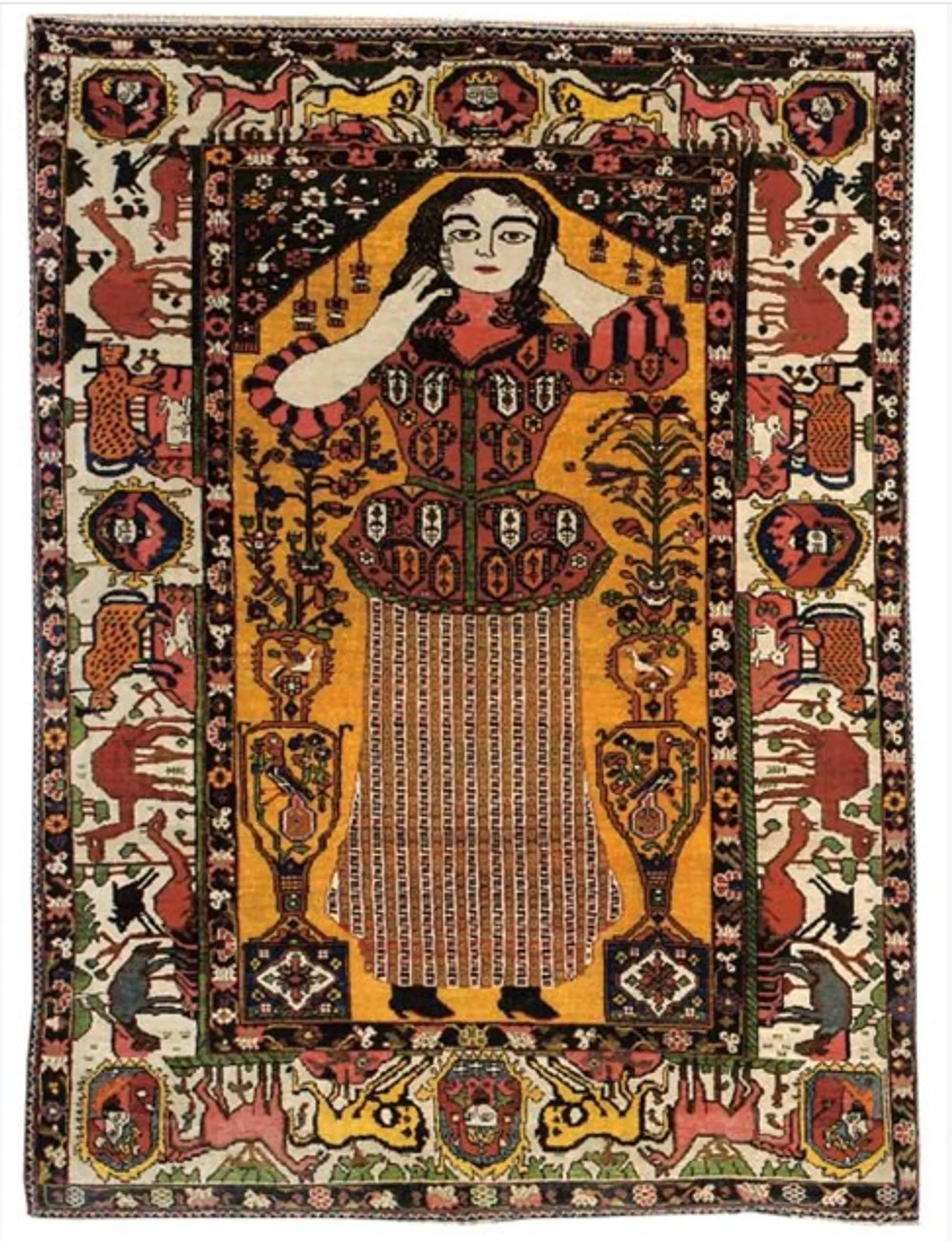 Another student was curious about Persian design history and found that many metadata practices limited items that are outside of traditional graphic design media or canonical approaches because concepts like “designer” might not apply. This Persian rug is an excellent example of graphic illustration that warrants attention.