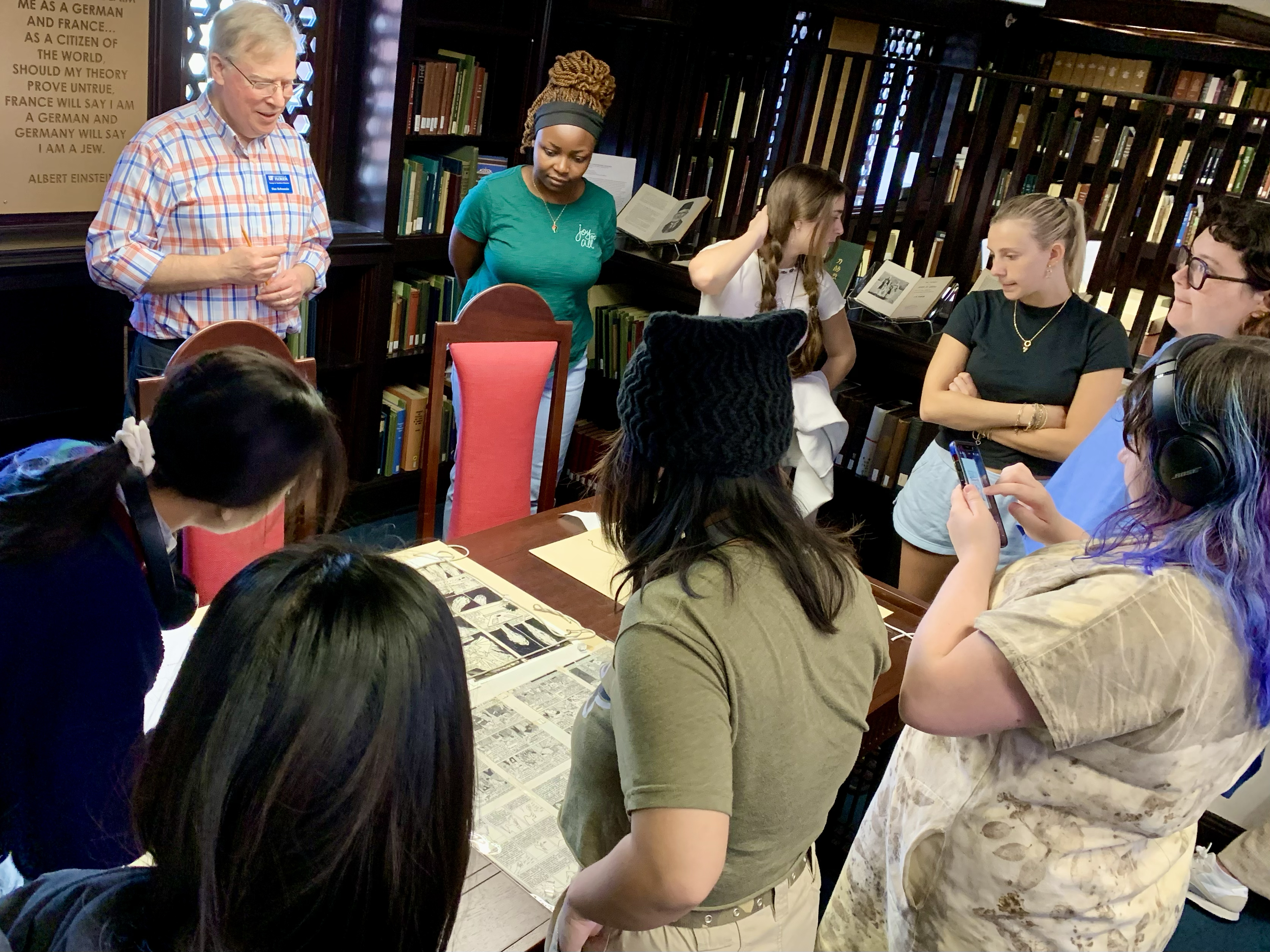 One student was interesting in learning about the long history of their local community and looked for design artifacts from Florida, including this 16th century engraved plate chronicling the explorations of the Americas by Europeans from an Indigenous perspective.