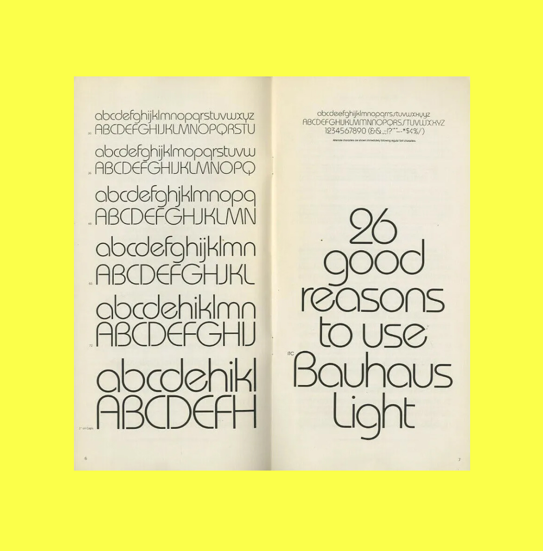 Bauhaus Typeface Specimen by Ed Benguiat and Vic Caruso for International Typeface Corporation, 1976