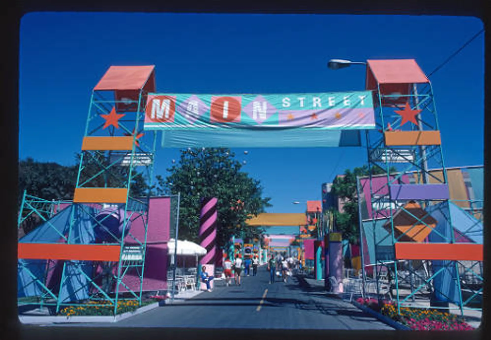 After reading about the Macintosh promotion, I wanted to see if I could find images of people using graphic design. I thought that a search for Olympic signage might be a good start, and I was delighted to find this example, the source of which is the Claremont Colleges Digital Library. The branding and signage for the 1984 Olympics Games were designed by Sussman Prejza and I just love the vibrant color scheme and bold patterns. You can see more images on this post from AGI. According to Wikipedia, architect Jon Jerde referred to the style as “Festive Federalist,” which made me chuckle. The design combines a sun-soaked aesthetic — so California and so New Wave — with references to the stars and stripes of the US flag. From the PGDA entry, we can observe the scale and the materiality of the signs. This article on Hyperallergic shows the use of inflatables at the opening ceremony and in placemaking installations. All of this made me wonder: what did it feel like to be at the 1984 Olympics? This news story from the Washington Post discusses the way the 1984 Games rejuvenated public interest in the Olympics. And then I remembered: it was during the 1984 Olympics when a four-year-old Aggie, pretending to be Mary Lou Retton by attempting gymnastics on our living room couch, got her first scar — 11 stitches through the center of my left eyebrow. Let’s just say I didn’t quite stick the landing.