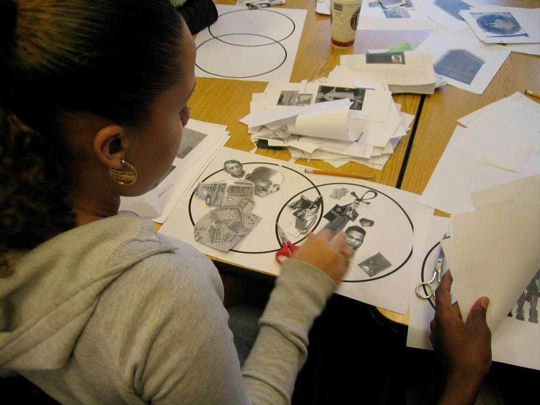 Kristina participated in a graphic design partnership with veteran Boston Public Schools Humanities Teacher Carole Teague. In her Malcolm X humanities curriculum at the Social Justice Academy at Hyde Park High School, students searched for alignments across Malcolm X's work using a customized Venn diagram design tool