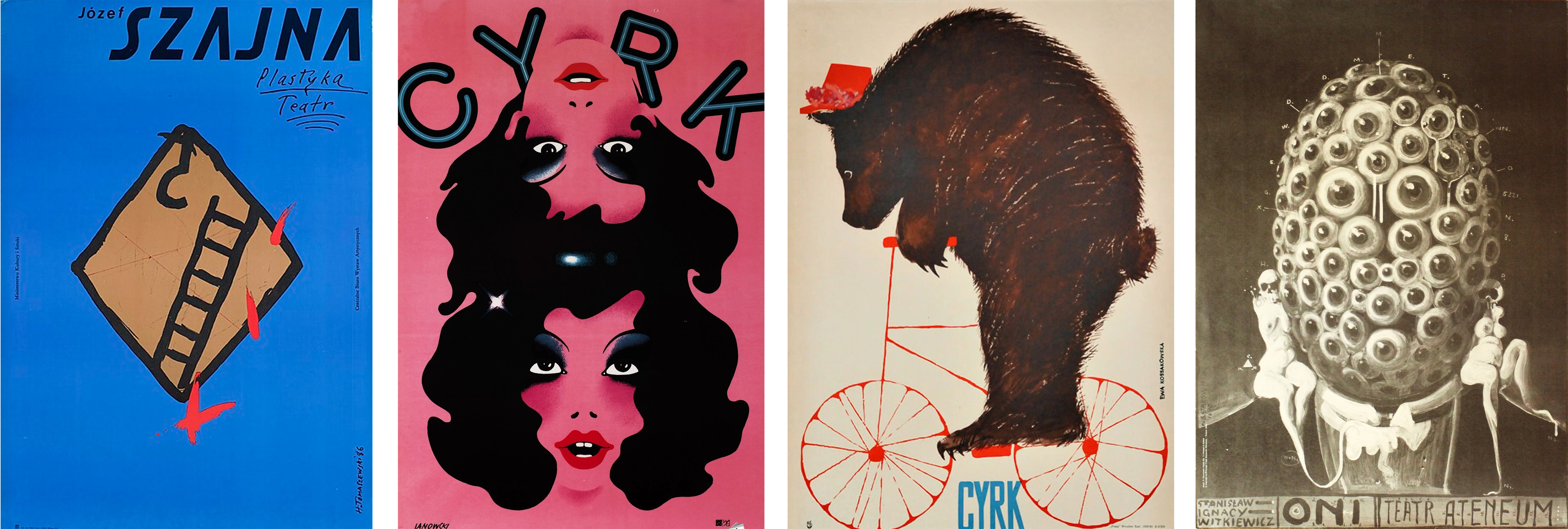 Polish posters in The Archive by Josef Szajna, 1986; Witold Janowski from the 70s; Ewa Kossakowska, 1962; and Franciszek Starowieyski, 1978.