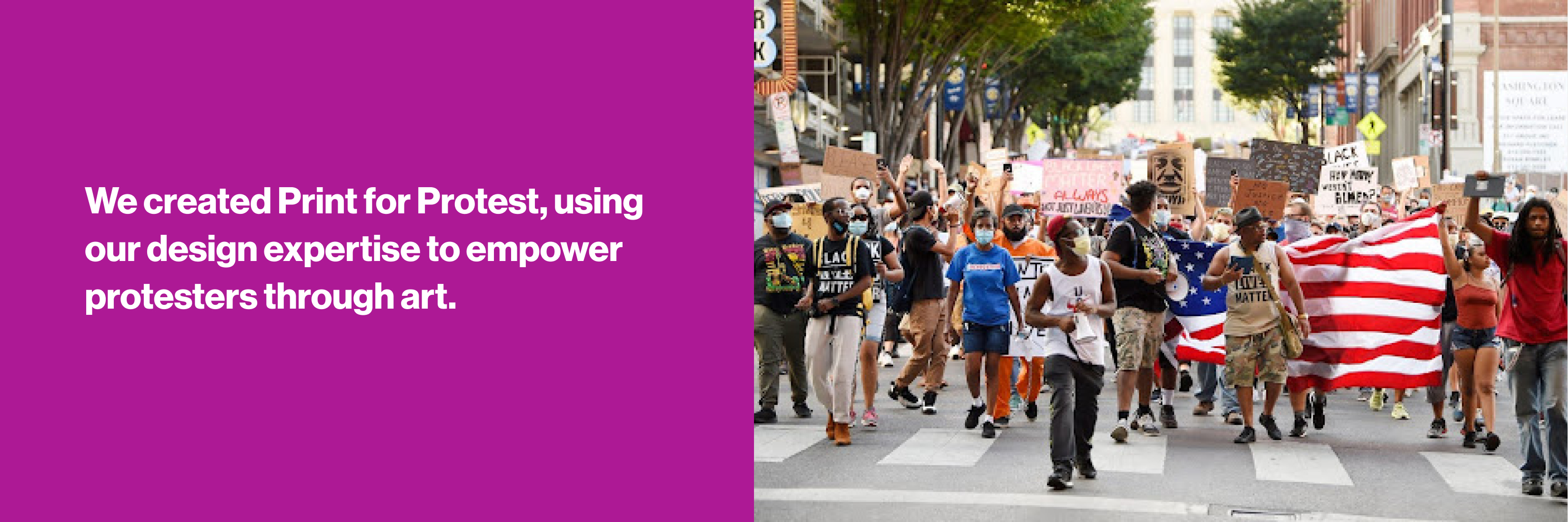 Working with JZane Design and Marlos Evans, we created Print for Protest, using our design expertise to empower protesters through art. At various protests, we screen-printed posters on-site at many protests around Nashville, Tennessee; spending hours preparing for each protest, drying screen prints, creating stencils, and spray painting. It was a lot of work, but I was finally doing something I was passionate about.