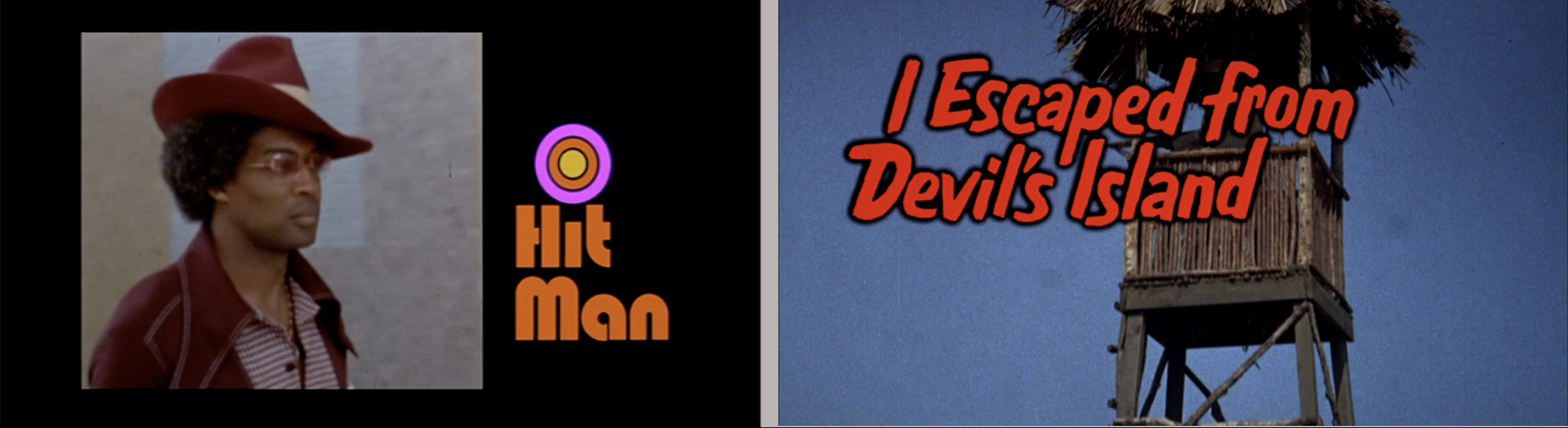 Early film titles designed by Dan Perri: Hit Man (1972) and I Escaped from Devil's Island (1973)