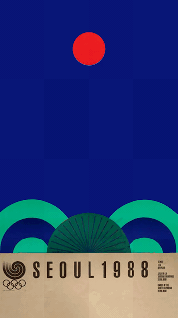 below, left: Mia Kehoe-Roberts created an animated version of a 1988 Seoul Olympics poster, Royal Screen Pattern.